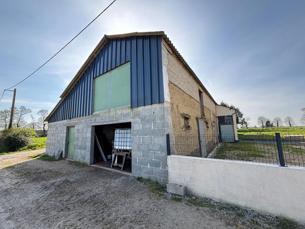 A l’extérieur, le bien dispose d’un débarras et d’une cave attenants, d’un grand hangar en trois parties et d’un garage.
