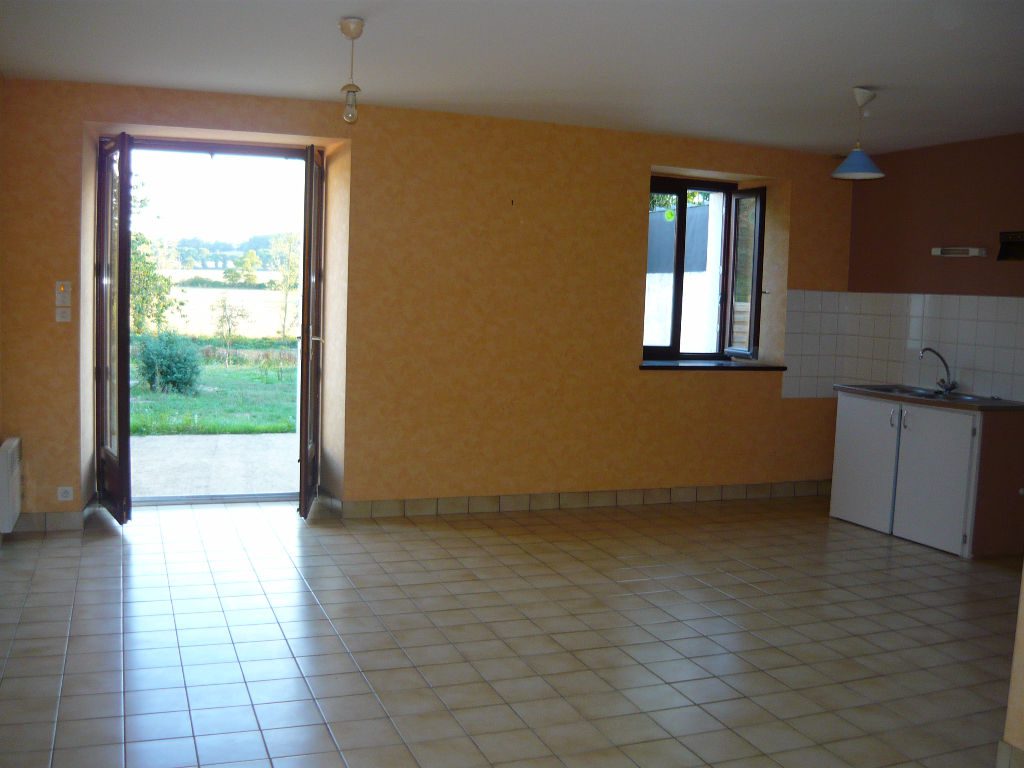 A louer, Maison de 55 m² dans un hameau au calme offrant au rez de chaussée : un salon/séjour avec coin cuisine (hotte), un wc indépendant. A l’étage, deux chambres, une salle d’eau et un wc indépendant