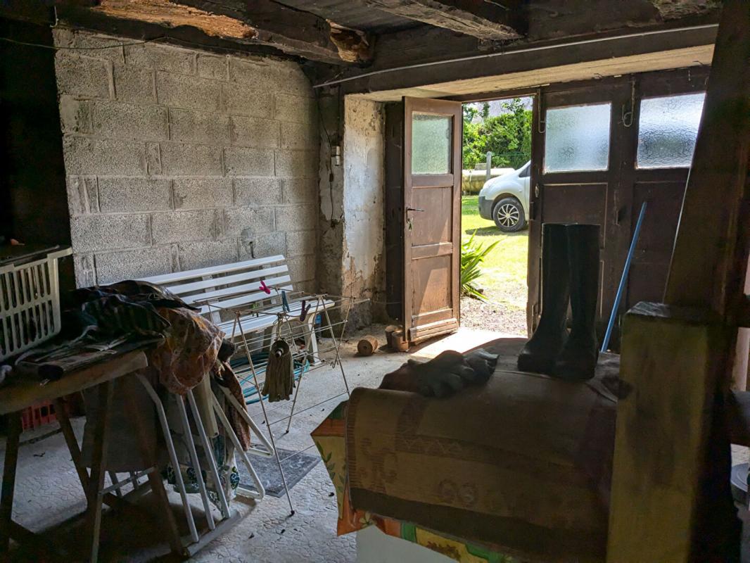 Maison à vendre campagne de LOYAT (région de PLOERMEL) : Cuisine, séjour, salon, véranda. w.c. Salle d’eau. Etage : grand palier, WC, une Chambre + lavabo et placard. Mitoyenne d’un côté. cour, jardin privatif, le tout couvrant un peu plus de 2000 m2. Grande dépendance en pierres dont garage et remise à outils sur jardin clos de haies vives. Assainissement à refaire. A moins de 5 minute en voiture des bourgs avec commerces de LOYAT et GUILLIERS. Chauffage gaz. (4.69 % honoraires TTC à la charge de l’acquéreur.)